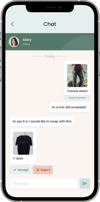 Users will be able to easily access the item's detailed information, reviews of the person they are swapping with, as well as chat with the swapper so as to provide more assurance.